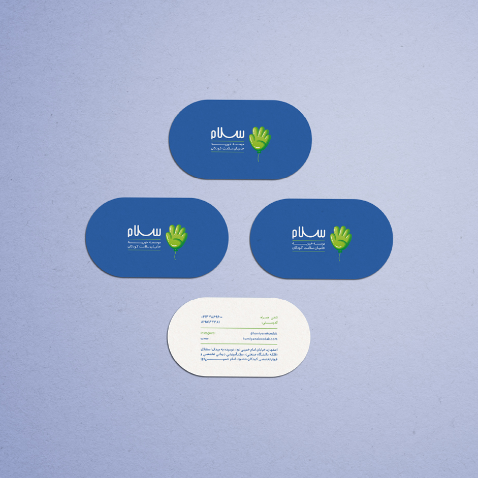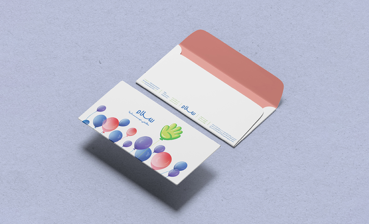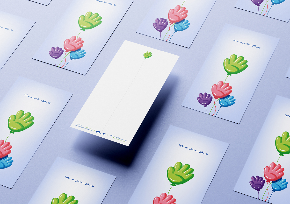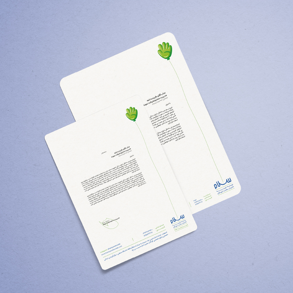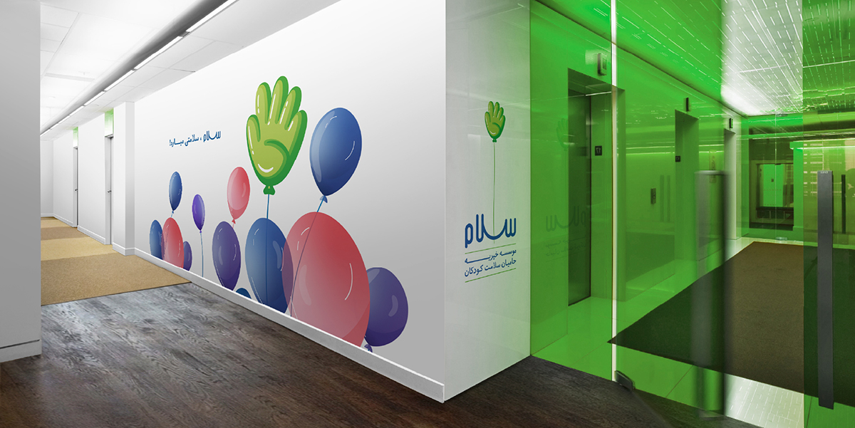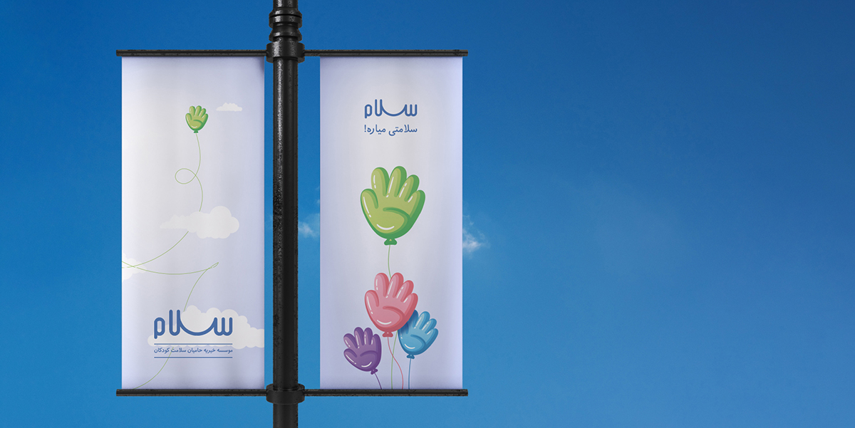 موسسه خیریه سلام که با نام حامیان سلامت کودک هم شناخته میشود، وابسته به مرکز آموزشی درمانی کودکان حضرت امام حسین (ع) فعالیت خود را شروع کرد. جامعه هدف این موسسه کودکان مبتلا به بیماری سرطان هستند. در همین راستا تا امروز اقدامات مربوط به تامین هزینه درمان، تجهیز بیمارستان و مراکز درمانی، و همچنین ساخت مجتمع درمانی مخصوص سرطان کودکان از اصلی ترین اهداف اجرایی آن ها بوده است. شروع این پروژه در تیم نارون با انتخاب اسم مناسب بود که در نهایت "سلام" با هدف رساندن پیام سلامتی به کودکان و خانواده های آن ها انتخاب شد. از آنجا که کودکان بخش مهمی از مخاطبین این خیریه هستند، طراحی لوگو و بسط هویت بصری باید با توجه به فضای کودکانه شکل می گرفت تا علاوه بر معرفی تصویری درست خیریه، ارتباط با کودکان را هم امکان پذیر کند. پس بادکنک و دست که دو کانسپت ساده اما پر معنی و دوست داشتنی برای بچه ها هستند اساس طراحی قرار گرفتند. با کمک این دو کانسپت تصویری قوی و متناسب با شخصیت برندی که توسط تیم استراتژی نارون برای سلام مشخص شده بود، پترن ها و هویت تصویری ساخته شدند. به طوری که صمیمیت و ایجاد حس همدلی که از مهمترین اهداف استراتژی سلام بود در تصاویر مختلف دیده می شود. چه زمانی که از تصاویر رئال مانند کودکان و لبخندها استفاده شده و چه زمانی که تصاویر گرافیکی هستند و بادکنک ها را در آسمان و یا دست را در حال سلام کردن می بینیم. بعد از طراحی کلی هویت بصری نقاط تماس برند با مخاطب، مثل اقلام اداری، بیلبوردها، گرافیک محیطی، استیکرهای چسبان ماشین و ... از عمده مواردی بودند که این هویت را به نمایش می گذاشتند.